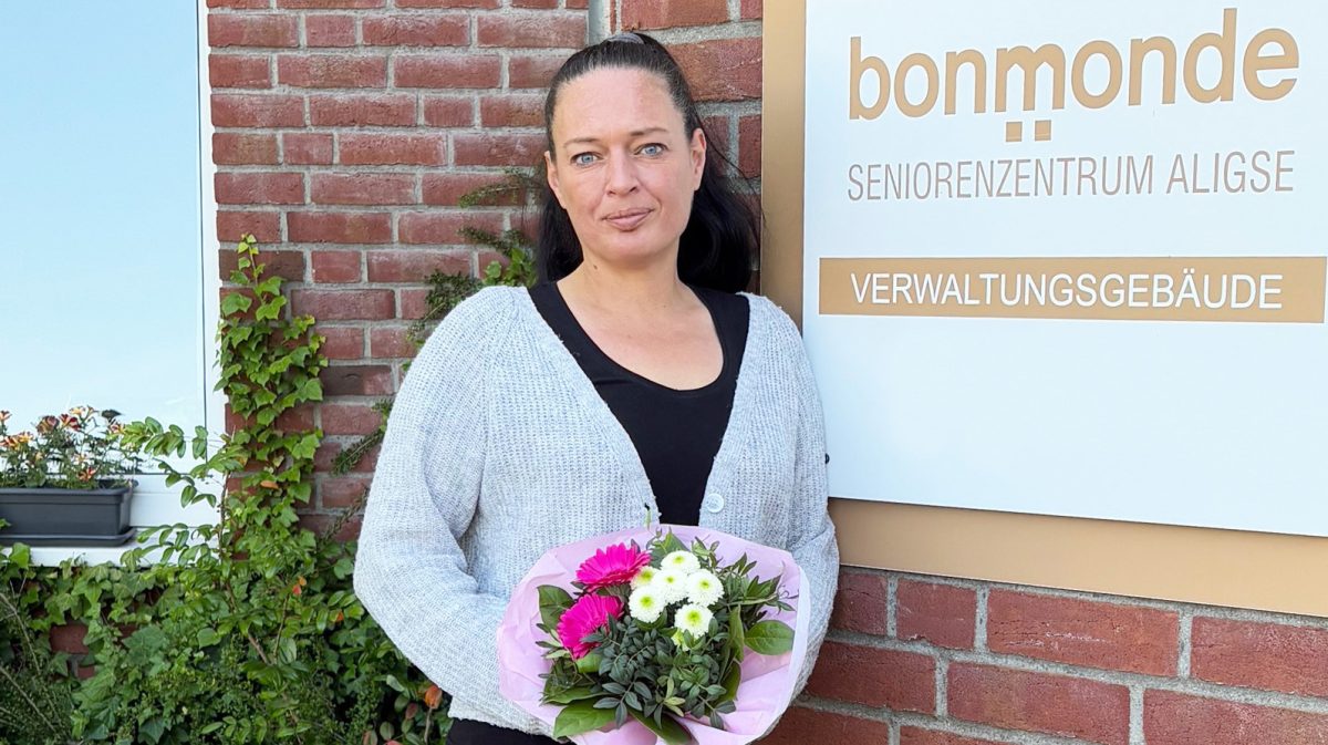 24.06.2025 – Mit Blumen werden bei Bonmonde neue Mitarbeitende empfangen: Sylvia Hänig ist ab sofort im Seniorenzentrum Aligse in der Verwaltung tätig. Die 45-Jährige ist gelernte Restaurantfachfrau und erfahrene Verwaltungsfachkraft. Sie freut sich auf den neuen Job. Zuvor war sie beruflich vielseitig unterwegs, u.a. als Hilfspolizistin. Als Mutter von drei Kindern weiß die gebürtige Freibergerin, die in Uetze lebt, wie man straff organisiert und sich Freiräume für kreative Tätigkeiten eröffnet.
